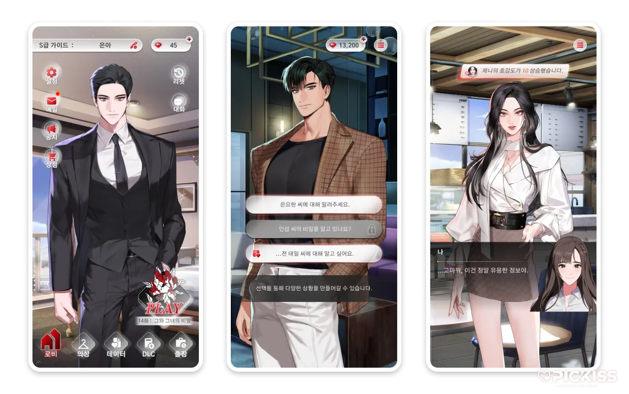 다양하게 구성된 선택지를 통해 인물과 의사소통 하고,