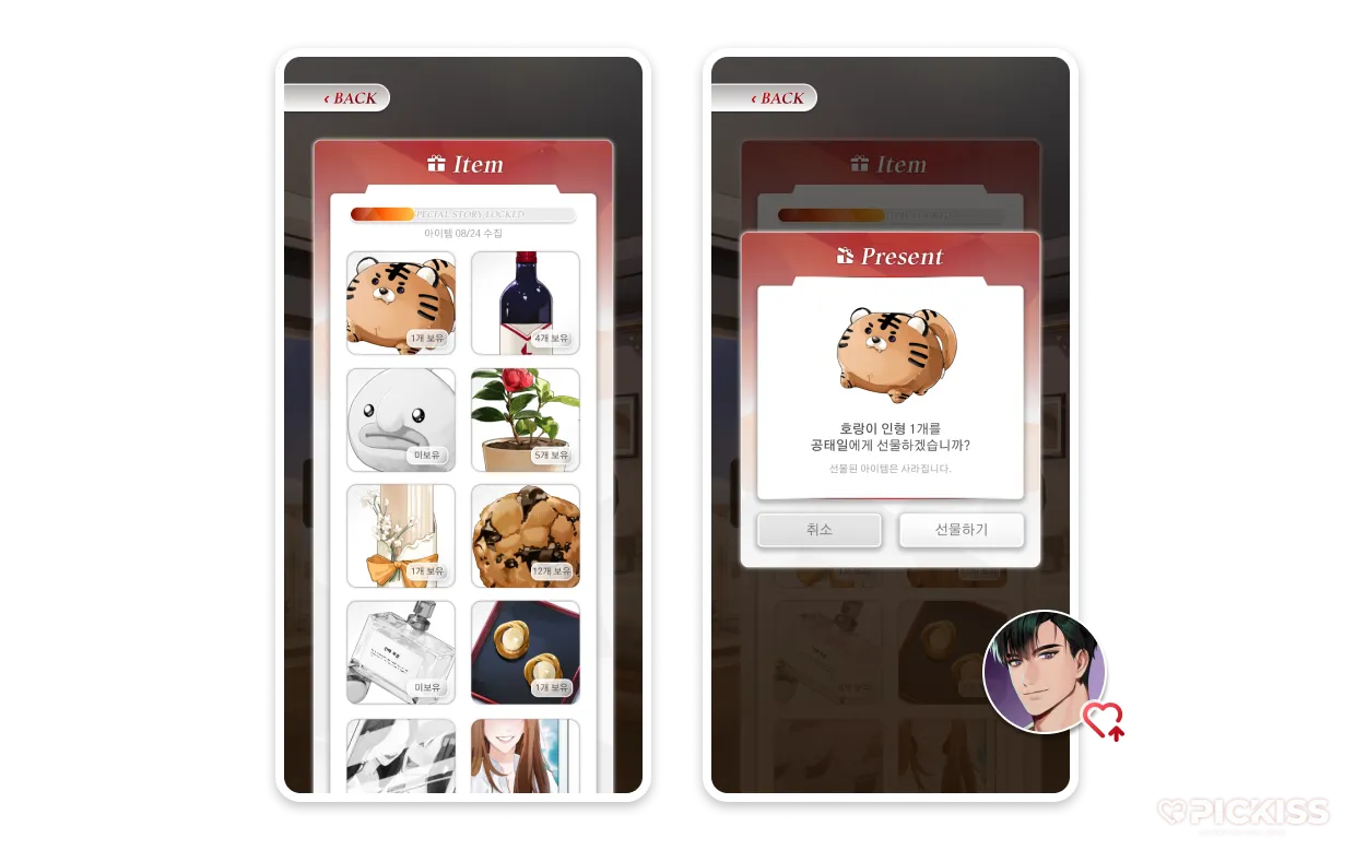 또한 사용자가 직접 인물에게 선물을 주거나,